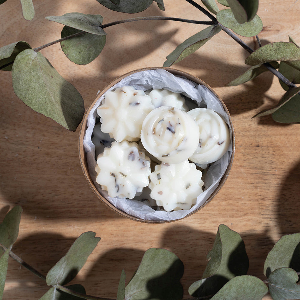 15 Flower shaped scented soy wax melts. Rose & Cotton, hand made in the UK. Each wax melt has a 2-3h burn time (45h total).