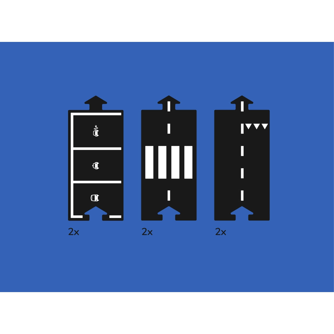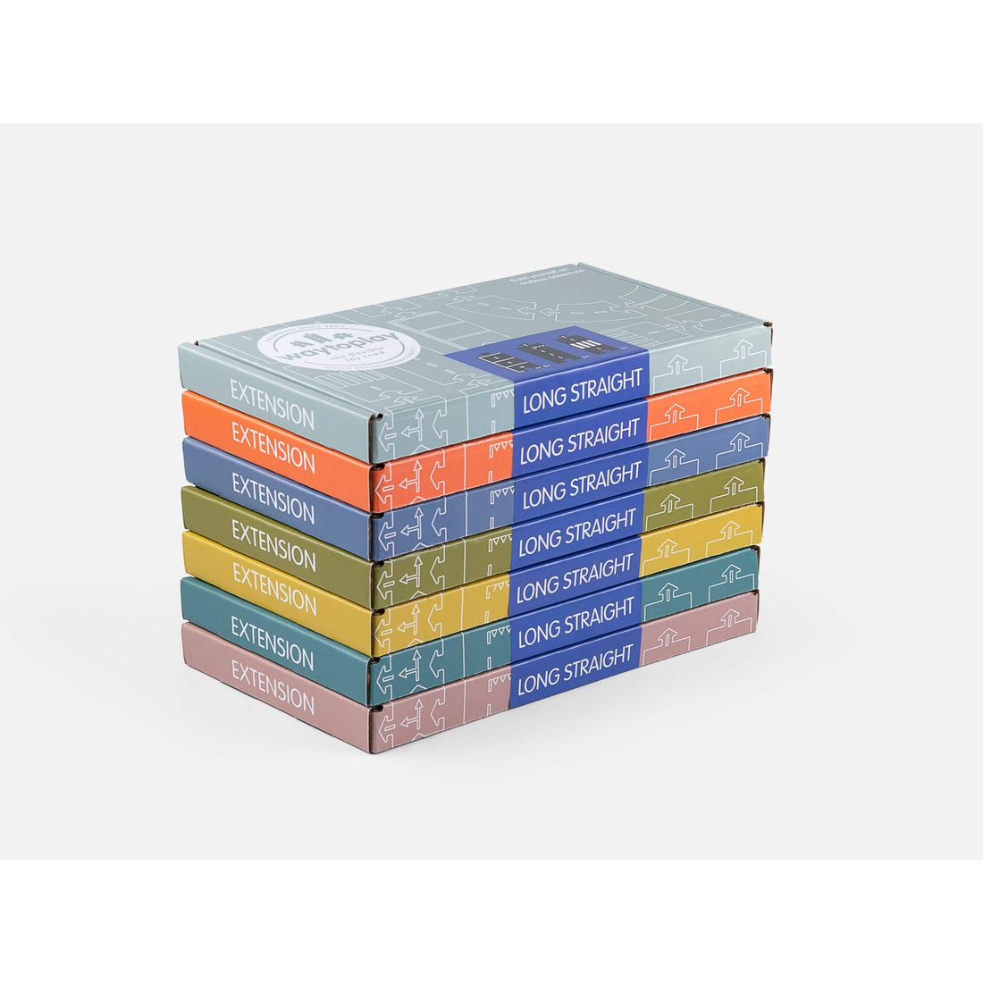 Waytoplay Long Extension Set with 6 straight road parts. This new extension set contains six straight road parts : two parkings with icons, pedestrian crossings and shark teeth. The waytoplay road parts are printed on both sides. Put them between or beside your waytoplay roads for even more fun. You expand your waytoplay lay-out with six road straight parts.