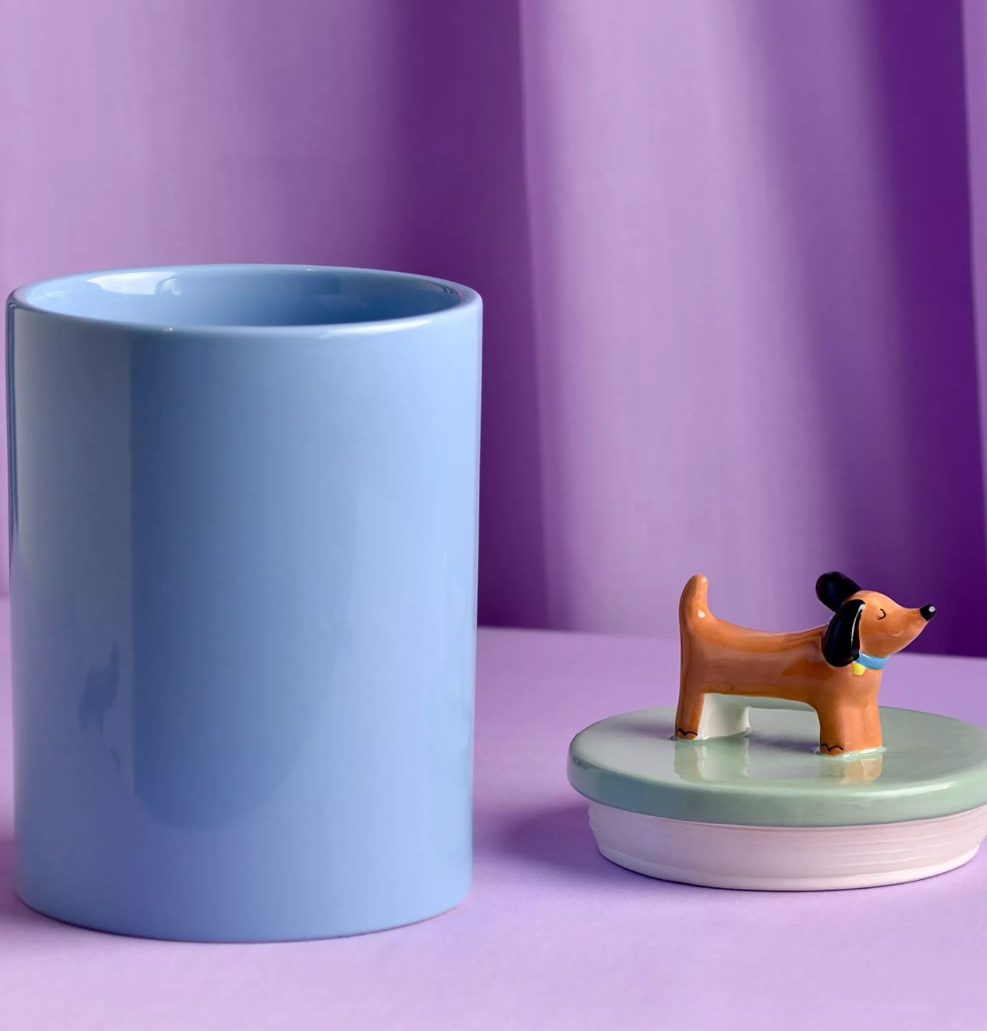Lovingly designed in collaboration with Raspberry Blossom, make a statement with this eye-catching dog canister. Boldness and joyfulness are what this colourful brand is all about. We bring you a branded collection of homeware and decorative gifts, inspired by the illustrations from this award-winning greeting card brand. Made from ceramic with a glazed finish and featuring glorious bold colours. Finished with a gorgeous dog embellishment on top of the lid. Colour box packaging.