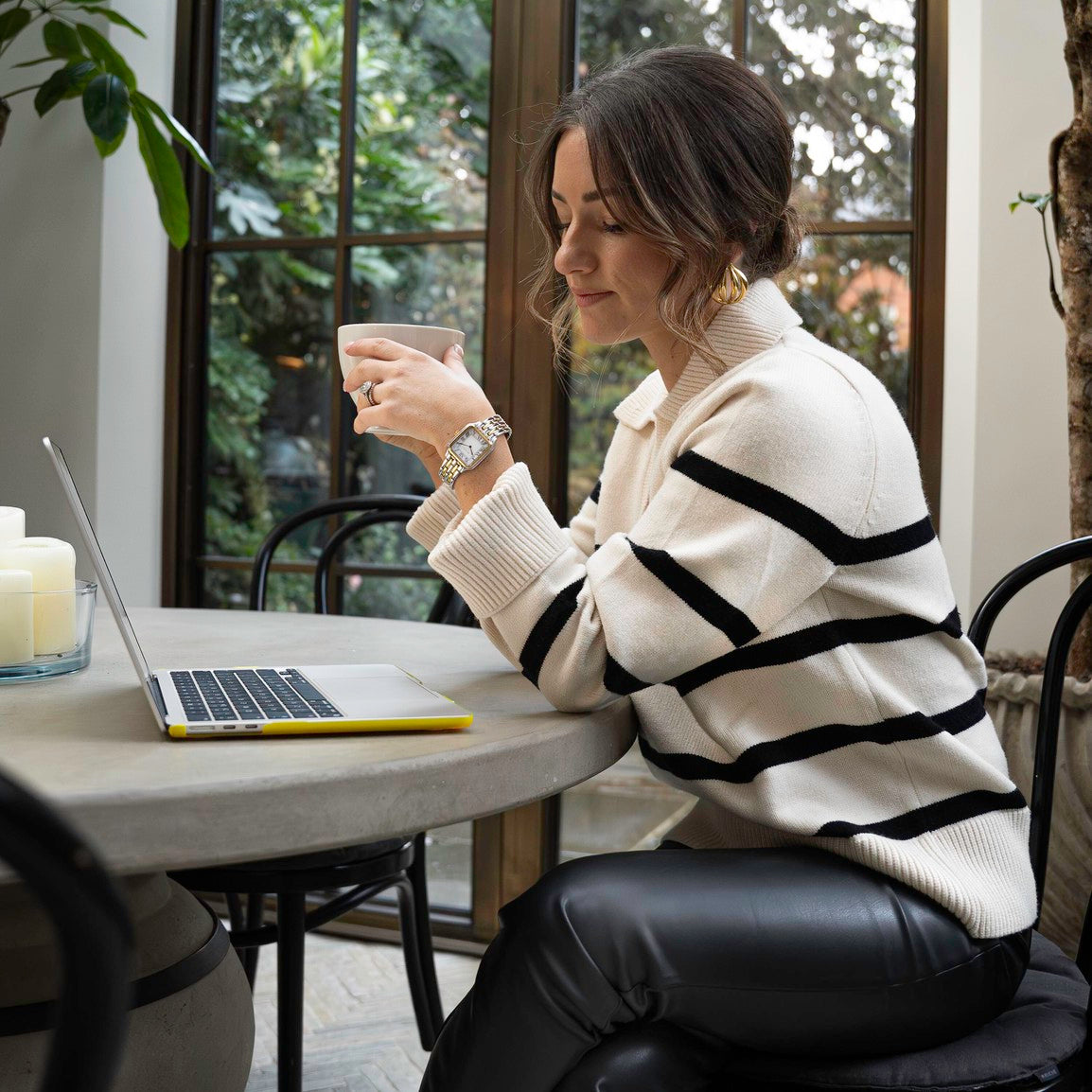 - Large rectangular two tone ion-plated gold and silver alloy case