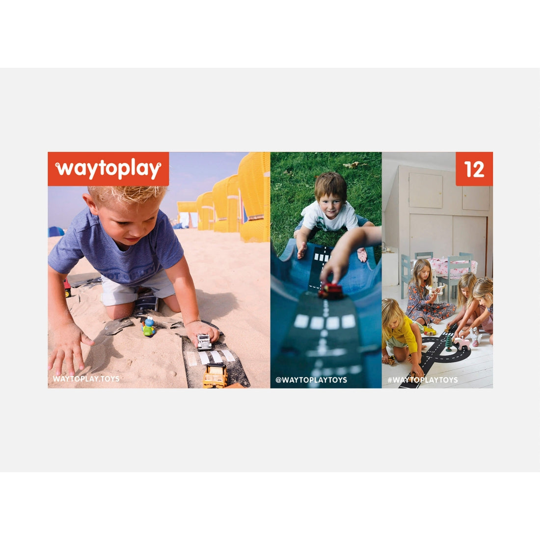 The Ringroad is the smallest set with 12 road parts to lay out a small road of almost 67 inch length. Each part is printed on both sides with different road markings to offer lots of variation. The shape of the parts are straight, curved and crossed so that you can make a small road or city street configuration. The high grade, child safe material is tough, unbreakable and yet flexible so that obstacles can be taken and the roads can be laid out on almost any surface... indoors and out!
